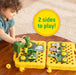Kun leikki on ohi, kaikki osat mahtuvat siististi taulun sisälle, mikä tekee siivoamisesta helppoa. Taulussa on myös kantokahva, joten se kulkee näppärästi mukana minne tahansa – täydellinen luovaan leikkiin sekä kotona että matkalla!