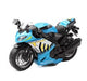 Virtaviivainen menopel leikkeihin! Moottoripyörässä on valo- ja äänitehosteet. Alla on huomaamattomat apupyörät, jolloin moottoripyörä pysyy pystyssä ajaettaessa.