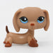 Littlest Petshop ruskea pisarasilmäinen mäyräkoira. Kirkas kaulatappi. Magneetti tassun pohjassa.